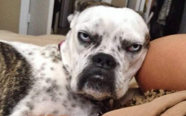 Даже самый милый и добродушный пес в отдельные минуты может выглядеть злобным и сварливым. И если хозяин подкараулит его в минуты грустных раздумий о своем, собачьем, получится вот такая фотография. И докажи потом кому-нибудь, что в душе ты белый и пушистый заинька!